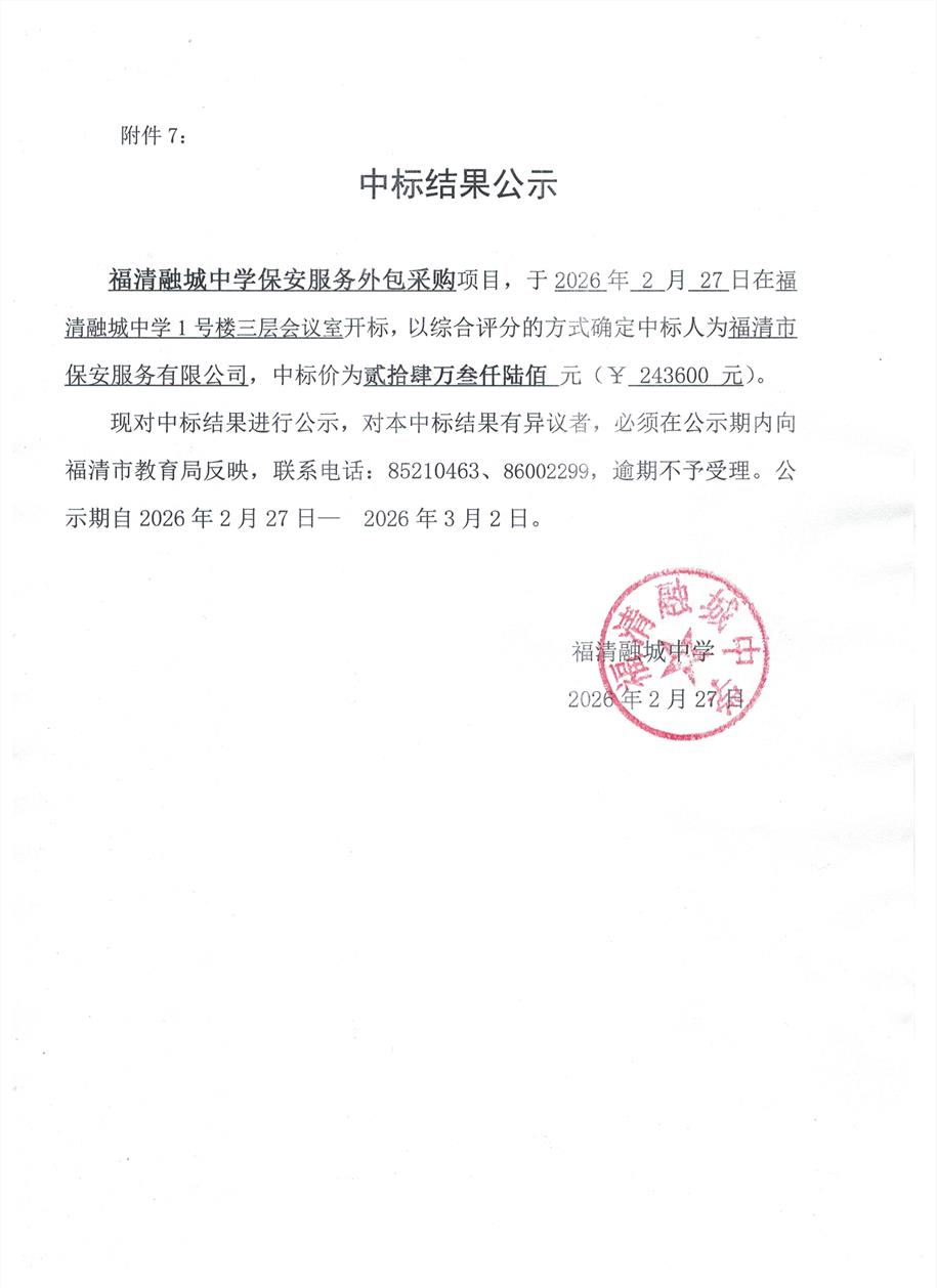福清融城中学保安服务外包采购项目中标公示